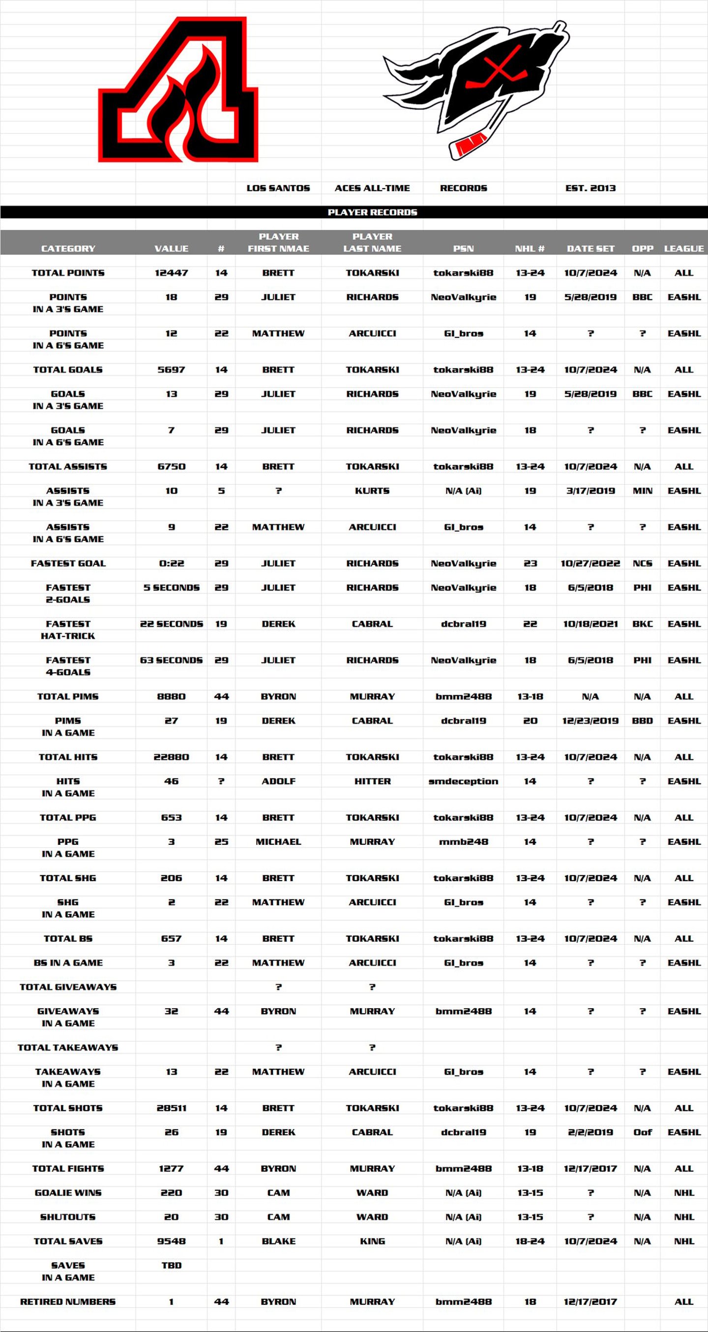 EASHL Player Stats
