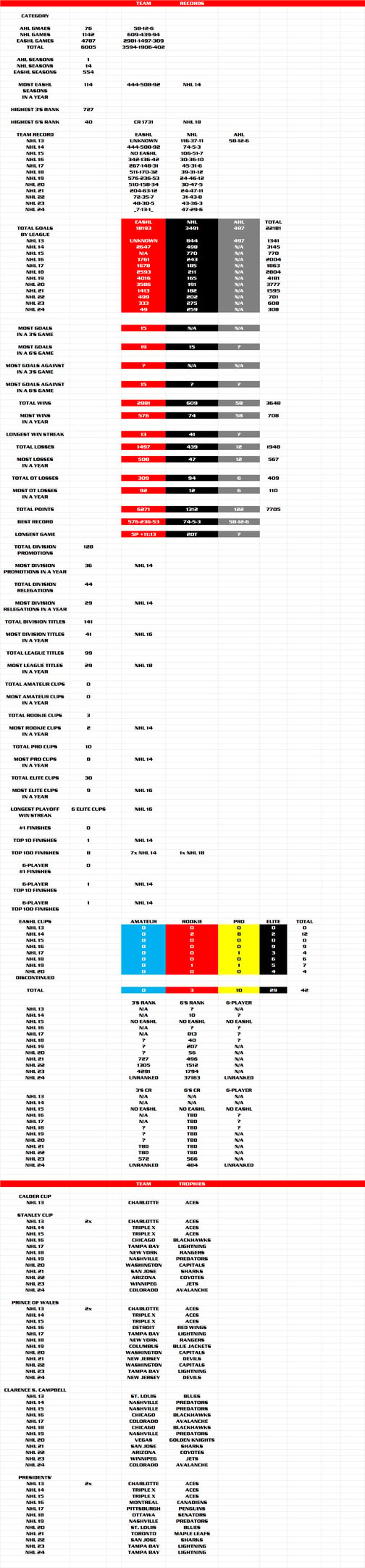 EASHL Team Stats